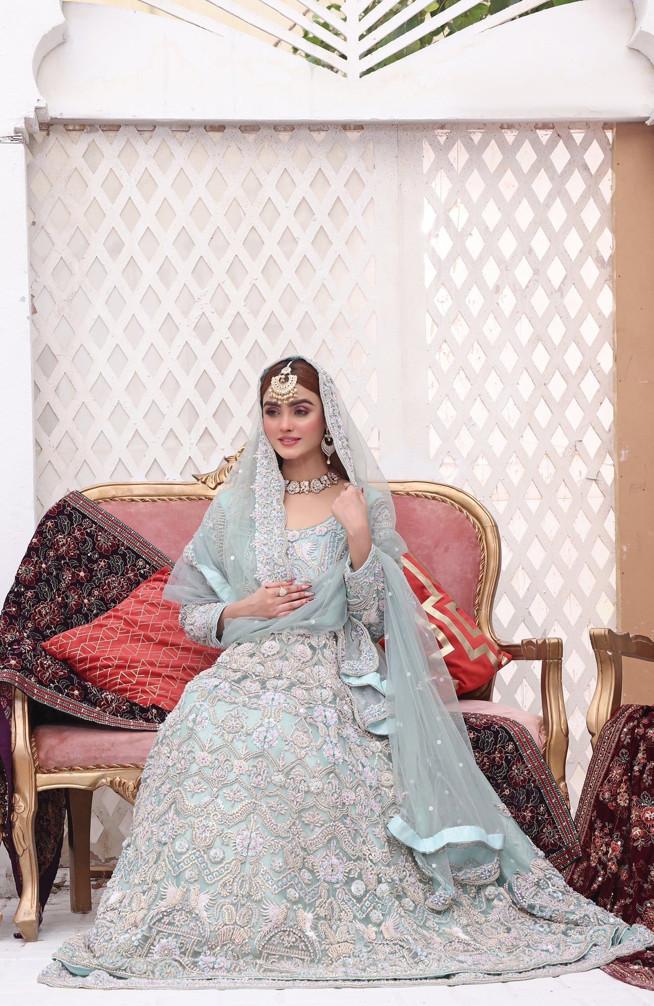 A collection that showcases fine craftsmanship and exquisite intricate elements. It is a collection where each ensemble echoes symphony of pastel hues with handwork, embroidery and crystal details with beautiful long veils and gorgeous long trails. Dresses are embellished with delicate embroidery and thread work in shades of silver, uplifted with cut dana, crystals and pearls. It's for our beautiful brides to be who can flaunt their gorgeous and magnificent dresses on their wedding day. Just everything about them unspoken and unsaid but majestic