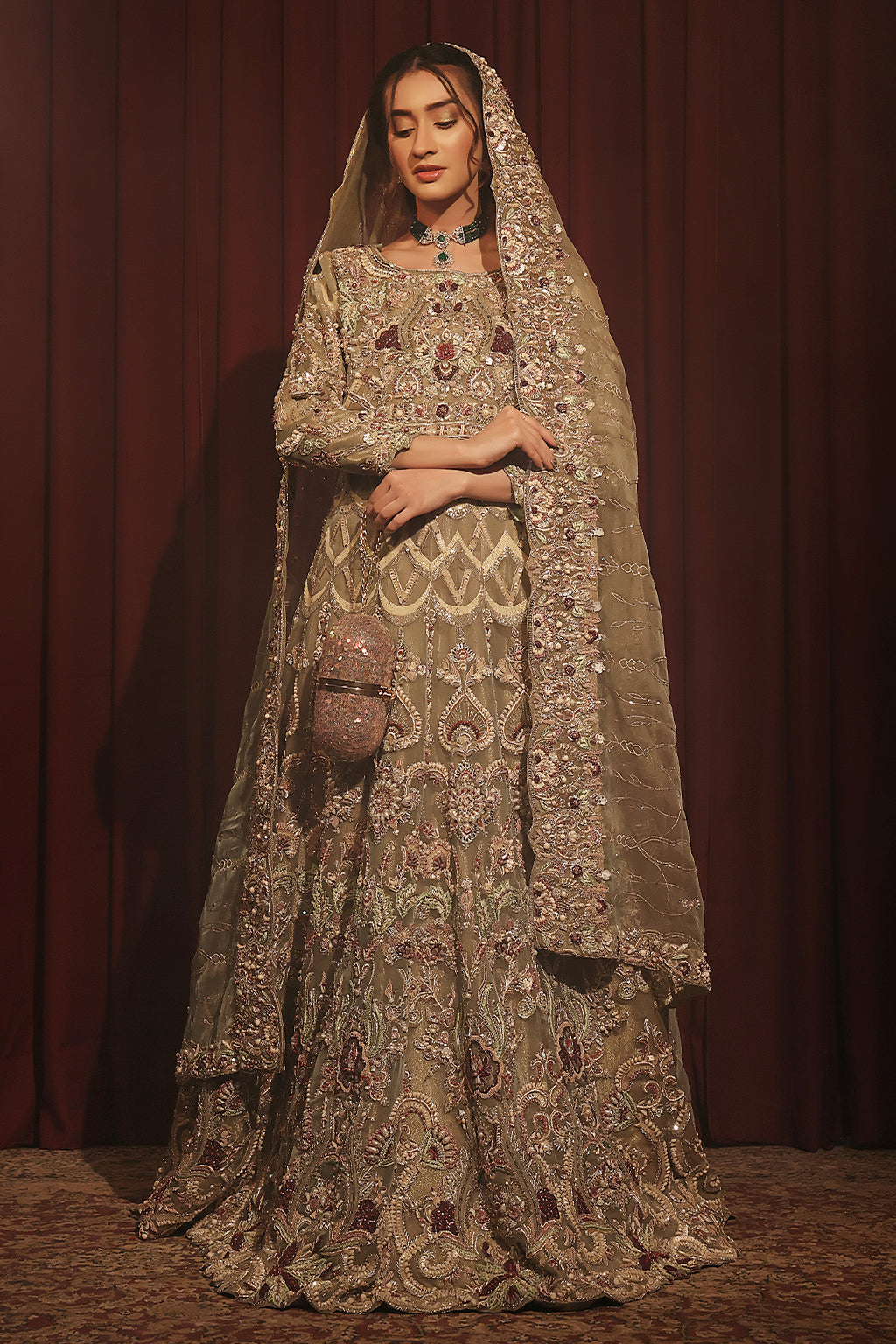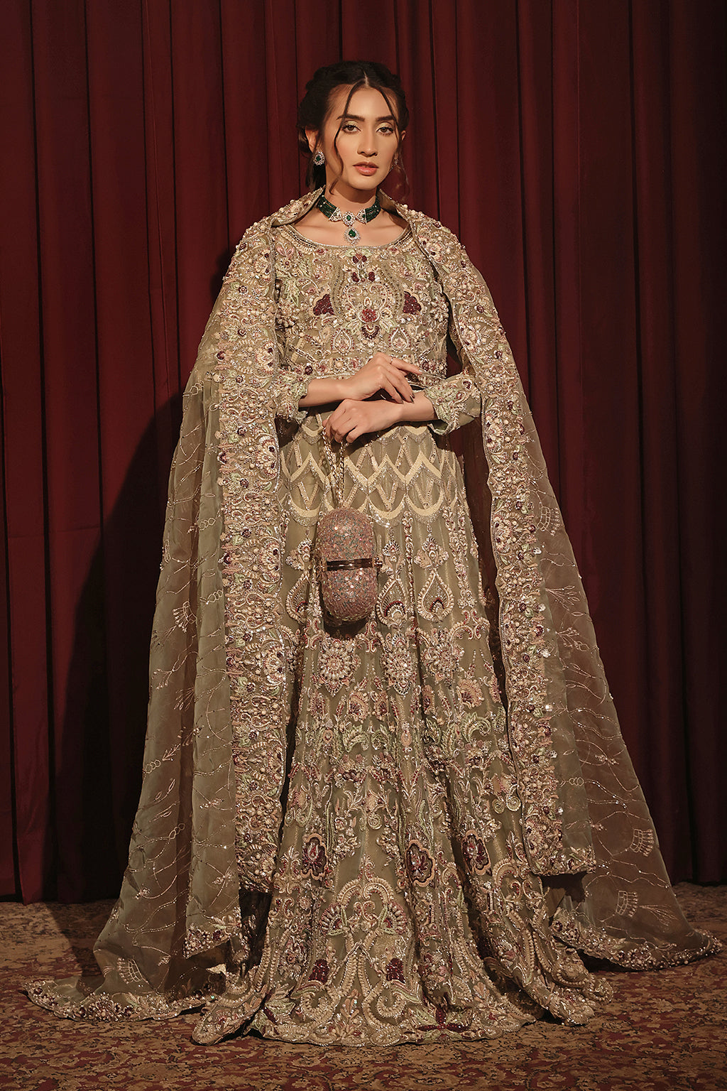 Rupiah is a pastel dream made with heavy thread work and mounds followed by beautiful floral sequins and stunning emerald green stones.