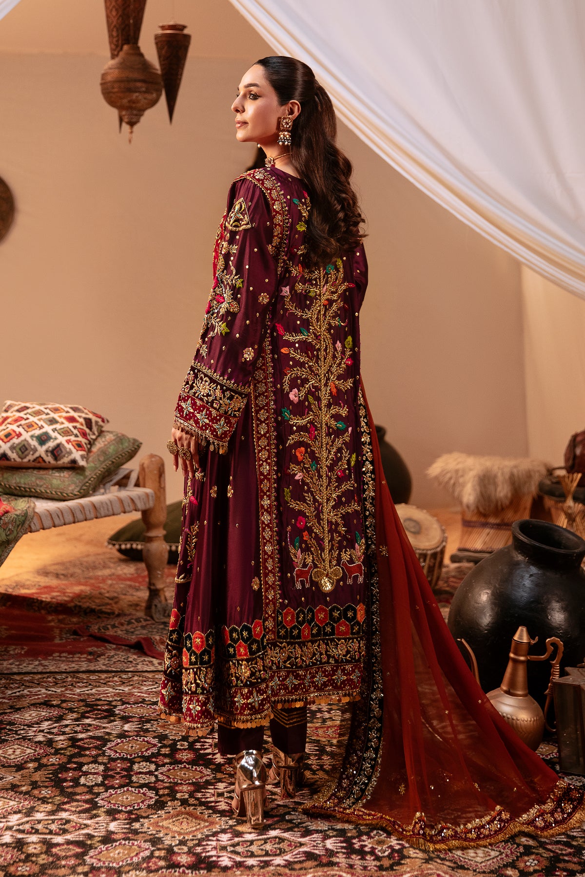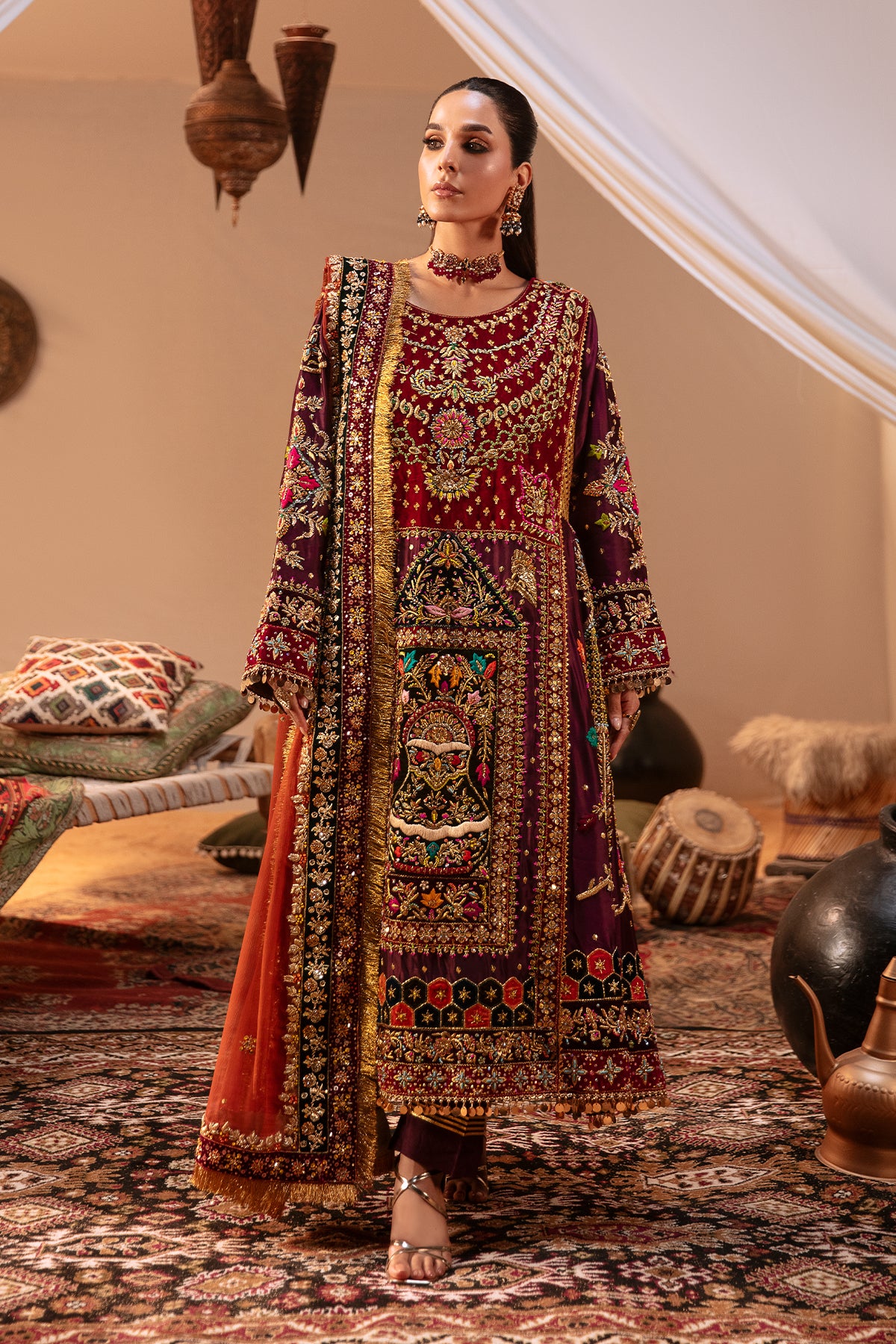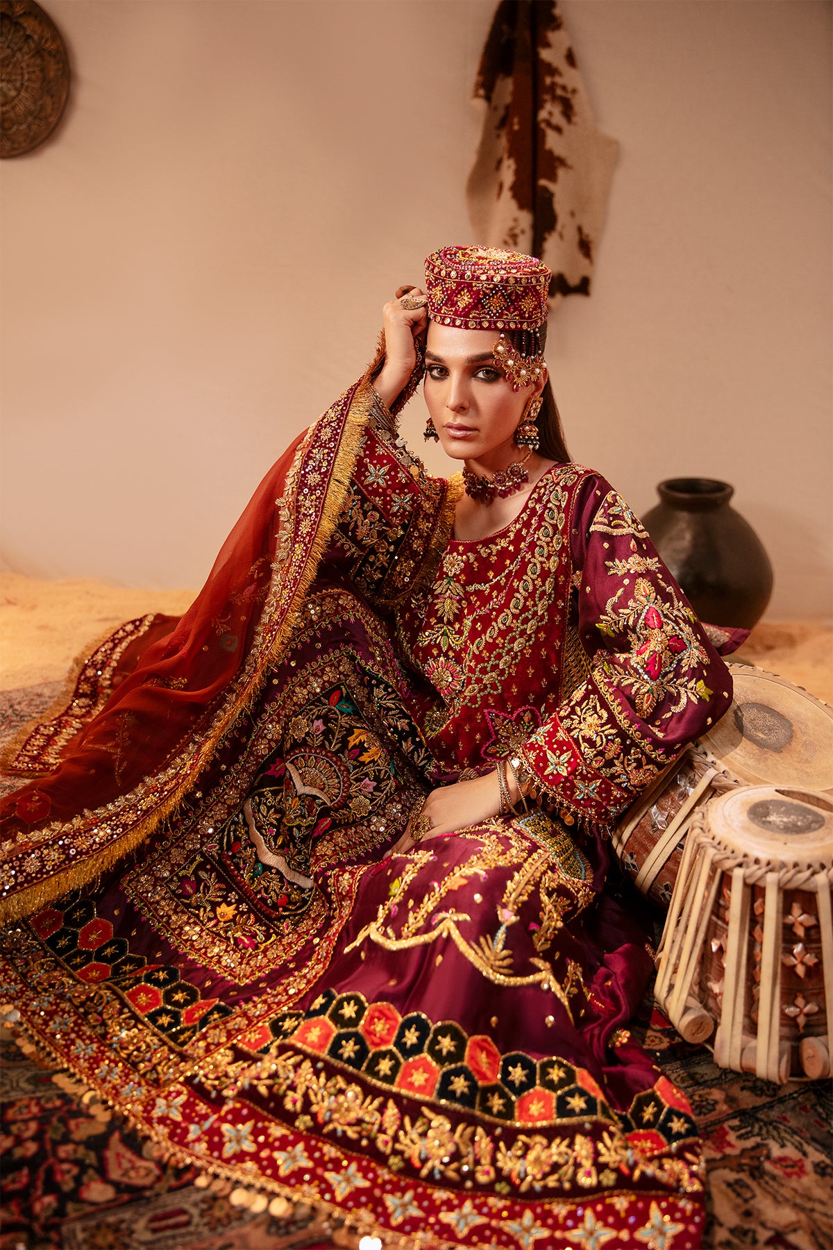 A masterpiece from the Isfahan Collection, Mahrosh embodies the rich heritage of Balochi craftsmanship with a regal modern touch. The intricate hand embroidery and luxurious plum hue create a timeless statement of elegance and grace — perfect for festive and cultural occasions.