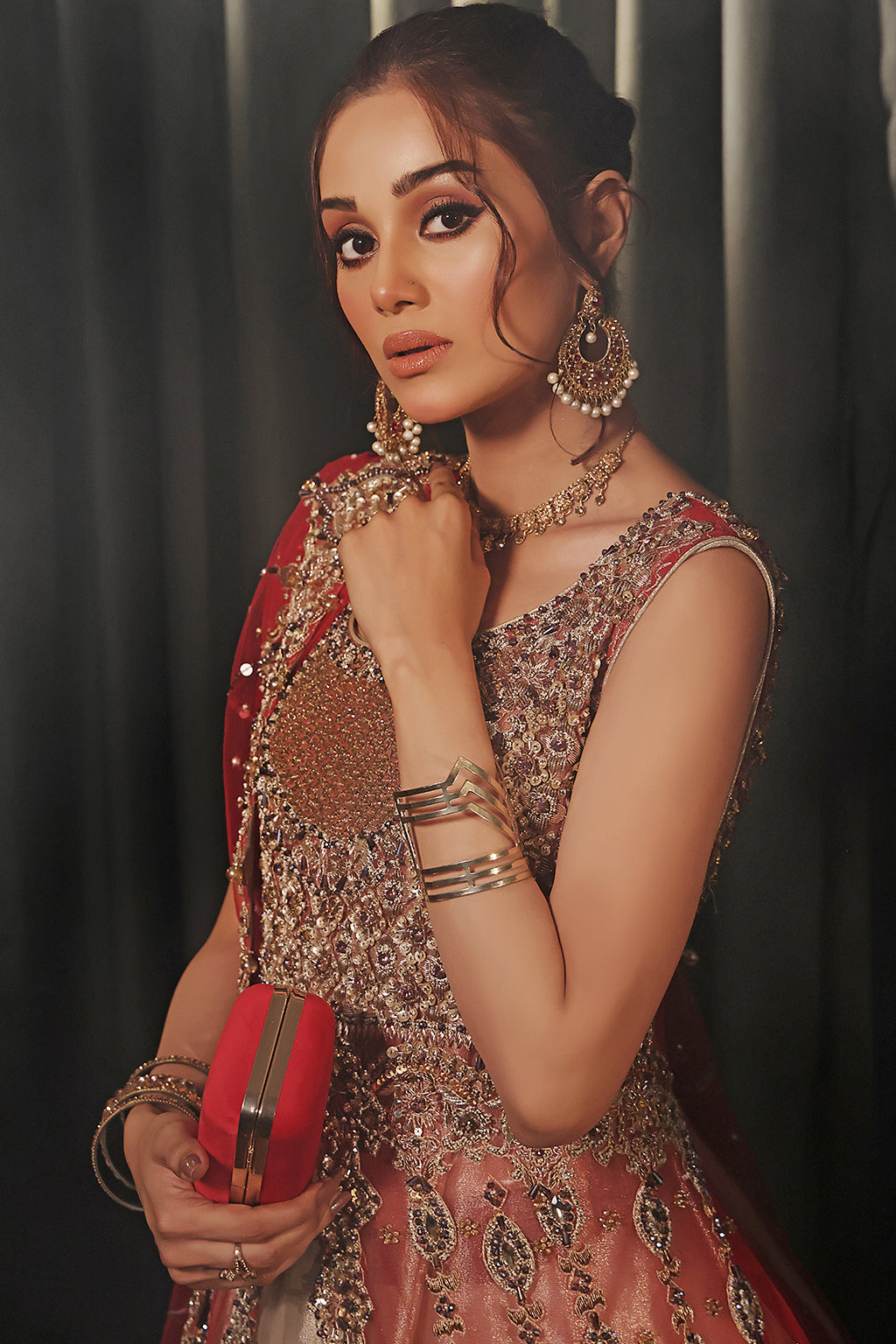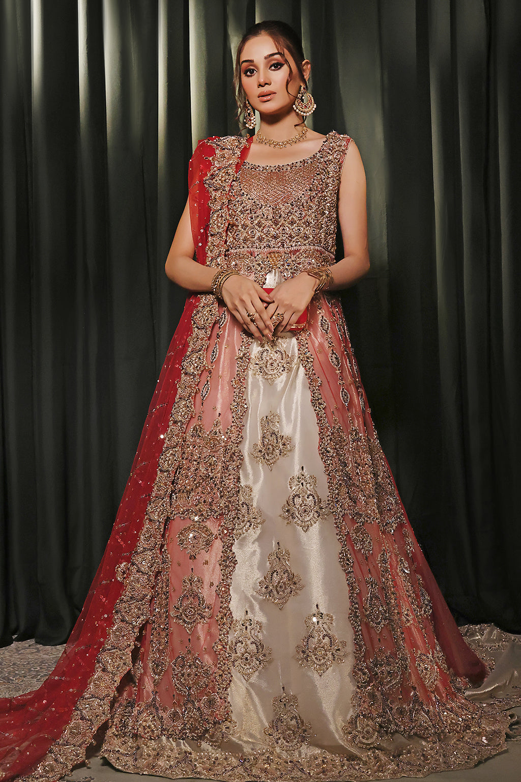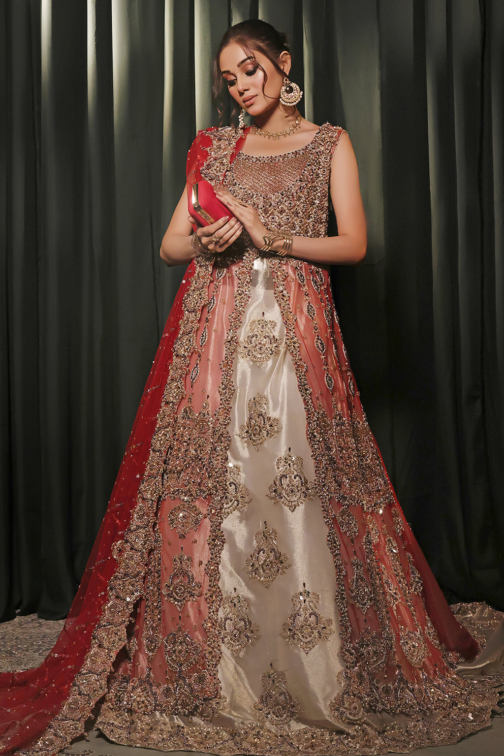 Color:Red Work Details: Hand Embellished With our work, new embroidery techniques derived from Paris, this bridal ensemble consists of a fully embellished front open long maxi. Fabric details Maxi and dupatta in net, inner fabric Missouri